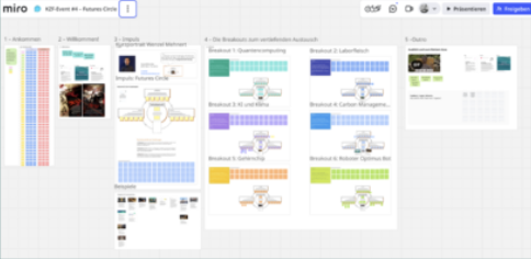 Slider mit Design für bisherige Events: Miro-Board, Titel, Input-Geber*innen, Youtube-Video, Blogbeitrag